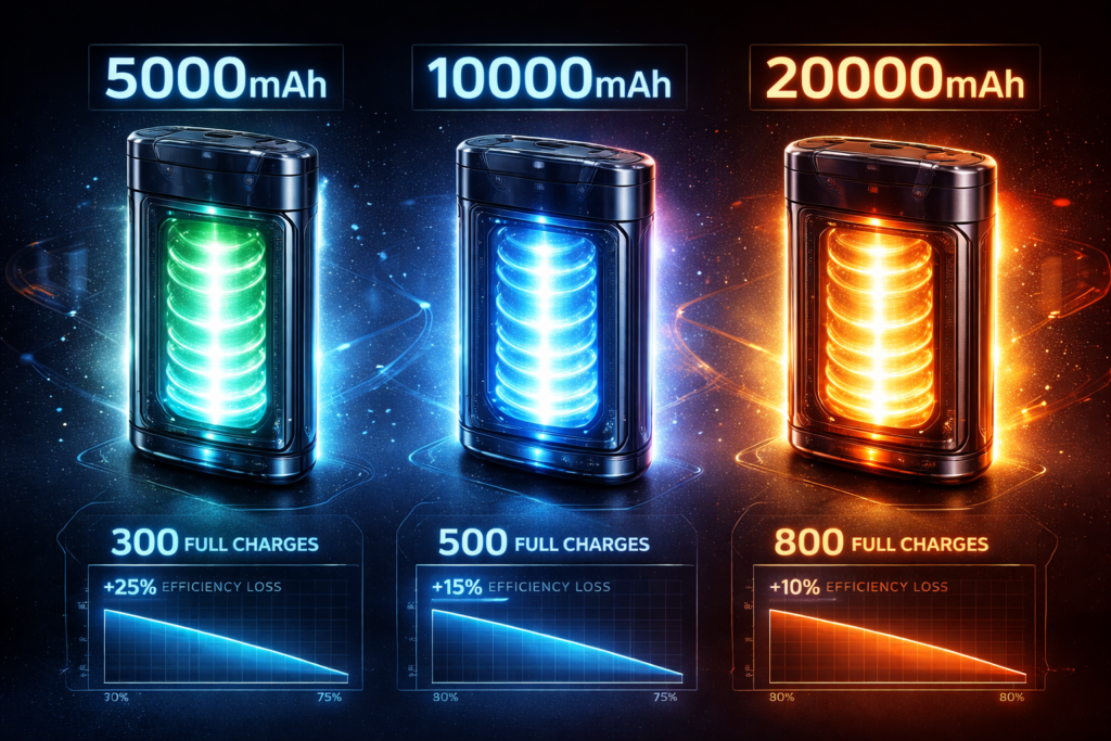 A capacidade define quantas vezes você consegue carregar seu dispositivo.