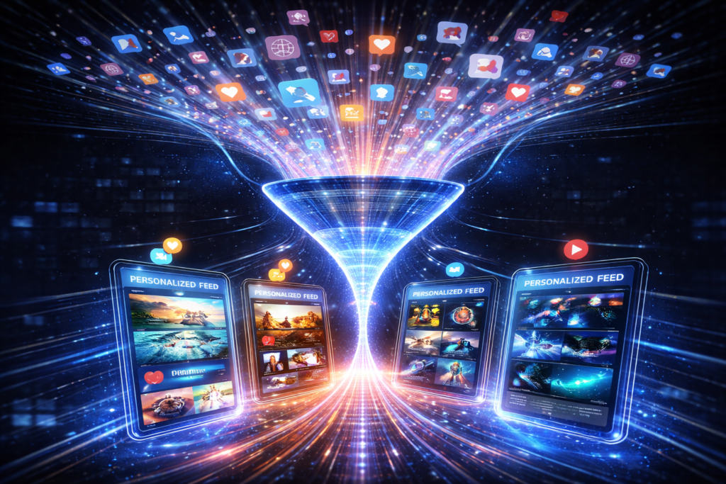 Plataformas como Instagram, TikTok e Facebook não exibem conteúdo de forma aleatória. Tudo o que aparece no seu feed é resultado de sistemas que analisam seu comportamento e priorizam o que tem maior chance de manter sua atenção.